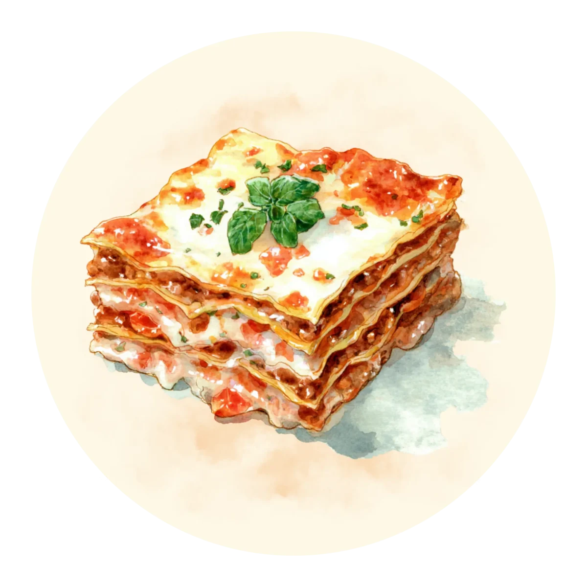 Lasagna z sosem bolońskim, szynką, grzybami, serem i sosem z pomidorów koktajlowych