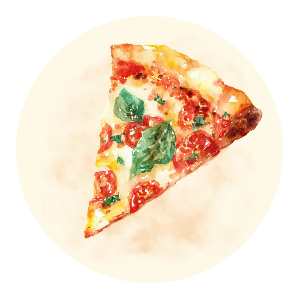 Salsa pomodoro, mozzarella, pancetta, cipolla, champignon